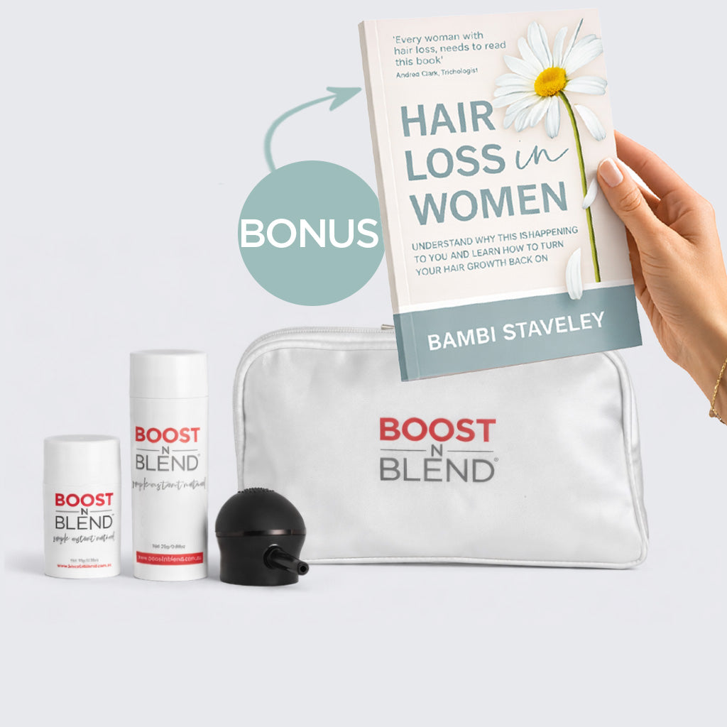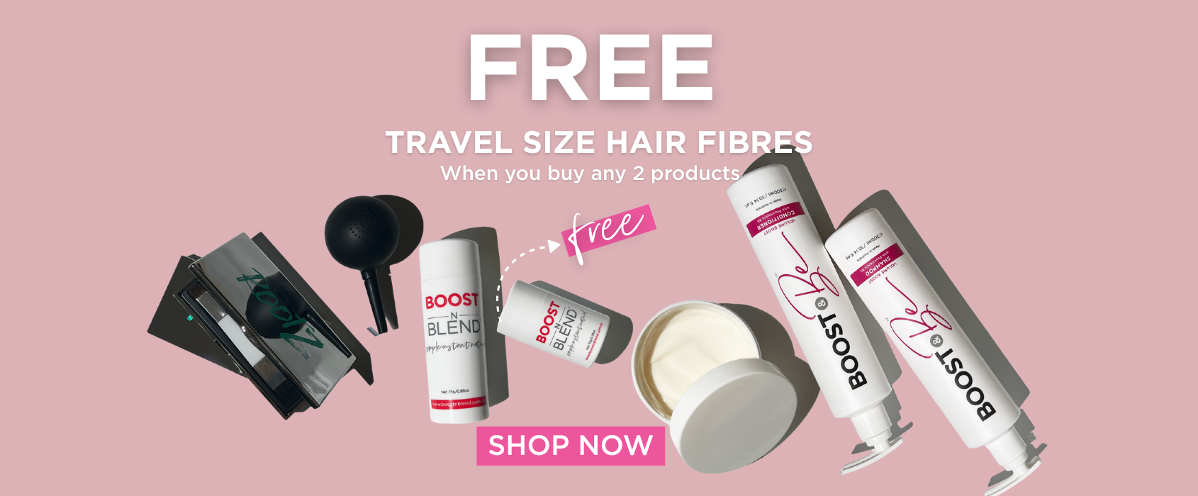 Boost N Blend is the only female-specific hair fibre product designed by women, for women. This natural hair loss concealer provides instant results by using tiny micro fibres to cling to each individual hair shaft and make each strand up to 10 times thicker. Our entire range has been designed to be kind to hair and boost its appearance so you can look and feel great.