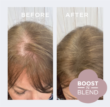 As I'm getting older I'm finding my hair is getting thinner (I didn't know that was even possible). A friend mentioned Boost N Blend™ to me and I thought I'd give it a try. It definitely makes a difference and blends in perfectly. You can't see where it is, but you can see the difference it has made.