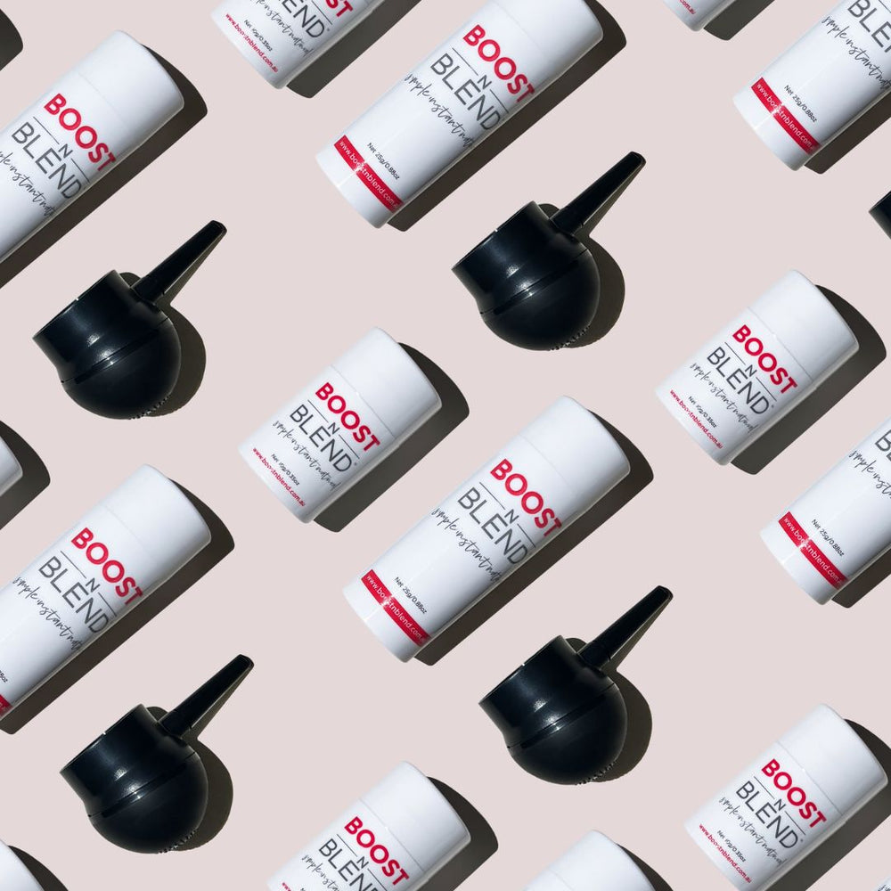 Boost N Blend works to boost your hair at the roots and give the appearance of naturally thicker hair, hiding the patchy areas of your scalp. It does this by using tiny cotton fibres to cling to each hair shaft and make it look up to 10 times thicker.