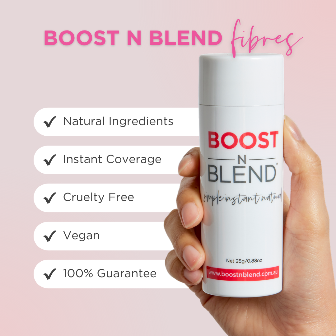 If you notice your hair falling out more than usual, or you are aware your scalp is showing in places where you'd rather it didn't, then shake in Boost N Blend. There are 9 shades - so there is one to suit every hair colour, including the greys!